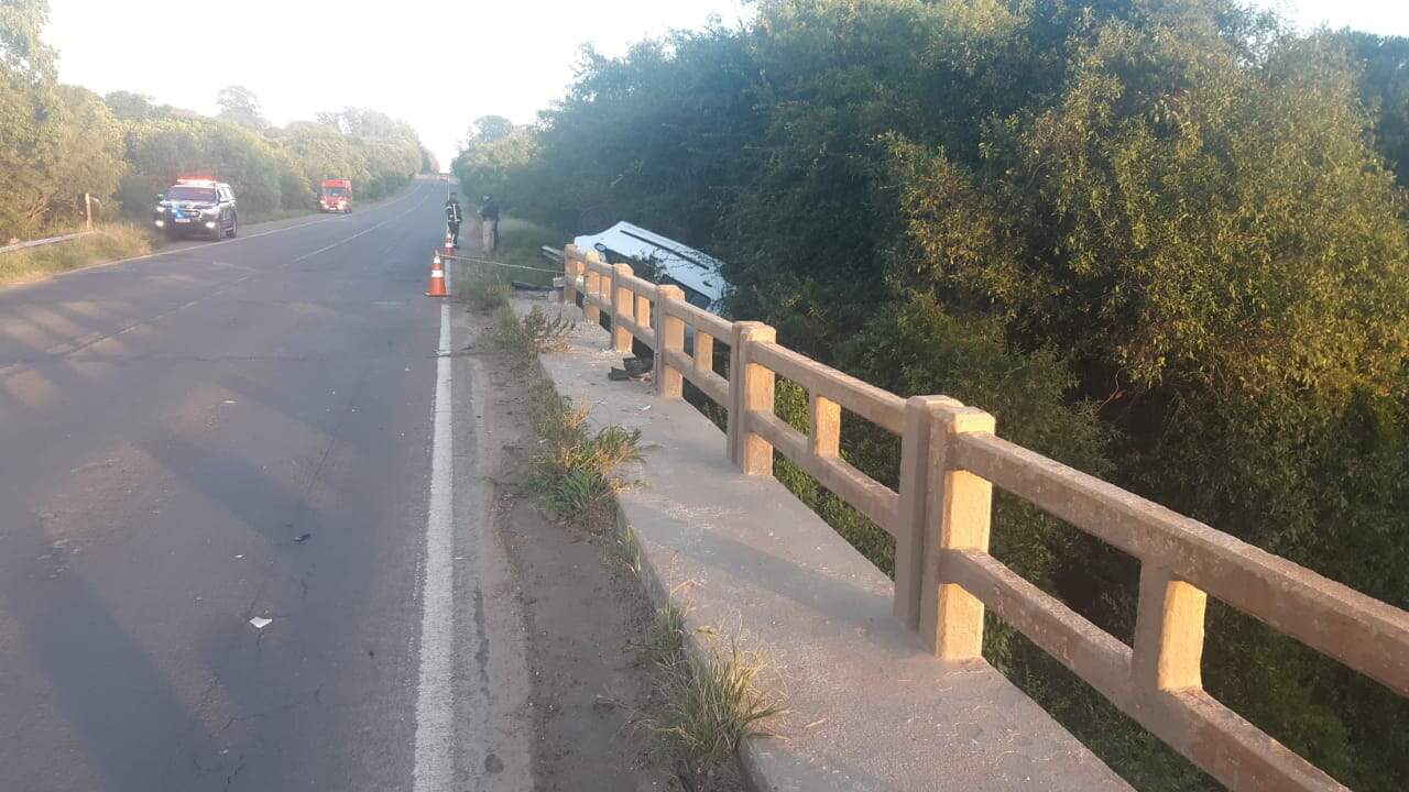 Por volta das 5h15 da manhã deste domingo (02), a PRF (Polícia Rodoviária Federal) atendeu um acidente do tipo saída de pista seguida de colisão com defensa de proteção (guard rail), resultando em duas mortes no km 416 da BR-290, em São Gabriel, na ponte sobre o rio Vacacaí-Mirim, na Fronteira Oeste do Rio Grande do Sul.