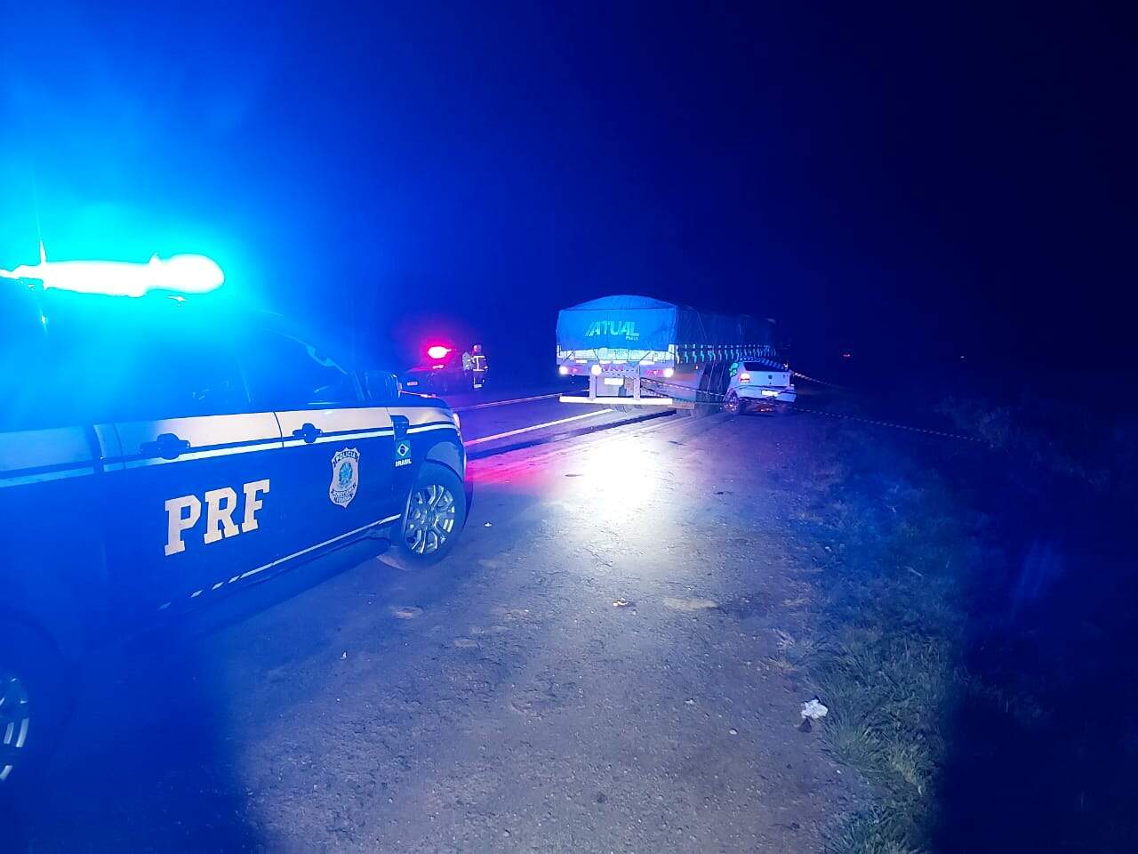 Duas pessoas morreram em um acidente no km 270 da BR-472, em Itaqui, na Fronteira Oeste, na noite deste sábado (20). Segundo a PRF (Polícia Rodoviária Federal), as vítimas, um homem de 33 anos e uma mulher de 24, estavam a bordo de um veículo Gol que colidiu com uma carreta Scania por volta das 21h.