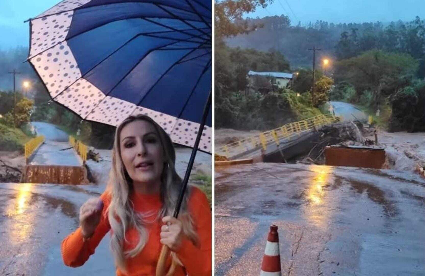 O cenário de destruição causado por mais uma ocorrência de chuva em excesso no Rio Grande do Sul tem sido responsável por imagens impressionantes. Uma das cenas de maior impacto foi registrada pela prefeita Gisele Caumo (PP), de Santa Tereza (Vale do Taquari): ao fazer uma transmissão pelas redes sociais com alerta sobre os riscos das enchentes, ela acabou registrando o momento em que uma ponte era arrastada pela correnteza do Arroio Barramansa.