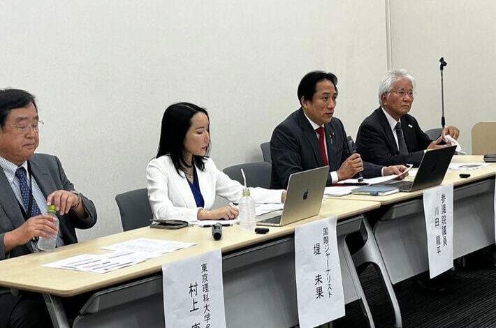 A postagem é acompanhada do vídeo de uma coletiva de imprensa convocada por Ryuhei Kawada, membro da Câmara dos Conselheiros – uma das instâncias do poder legislativo japonês. Kawada pediu a suspensão temporária das vacinas de mRNA “replicon” da nova campanha de imunização contra covid-19, iniciada em 1º de outubro de 2024. Nenhuma das pessoas que participaram do evento eram representantes do governo. Na mesa, estavam dois professores universitários, o próprio Kawada e sua esposa, a jornalista Mika Tsutomi.