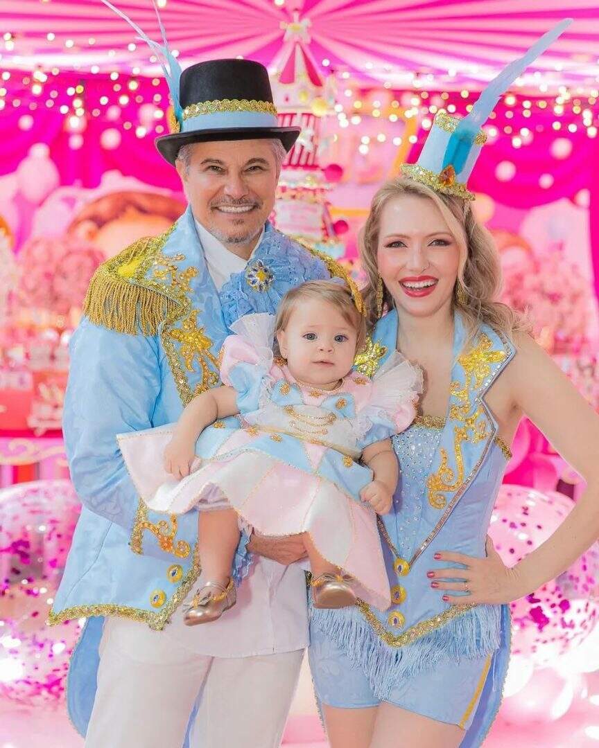 Edson Celulari e a mulher, Karin Roepke, fizeram uma superfesta para comemorar o aniversário de 1 ano da filha, Chiara, neste domingo (19). O tema da celebração era circo e os papais e a bebê capricharam no figurino para entrar no clima.