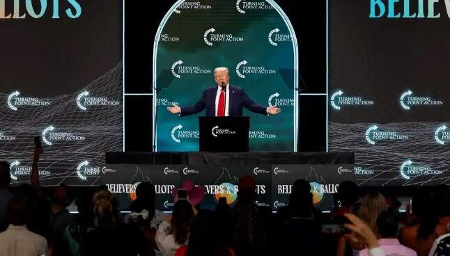 As falas ocorreram em evento do grupo conservador Turning Point Action em West Palm Beach, na Flórida, e foram voltadas para o público religioso. “Cristãos, vão e votem, apenas esta vez. Vocês não vão precisar fazer isso novamente”, disse Trump. “Eu amo vocês cristãos. Eu sou cristão. Eu amo vocês. Vão, vocês precisam ir e votar”.