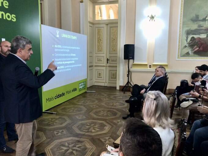 Em entrevista coletiva na tarde desta quarta-feira (20), o prefeito Sebastião Melo e o secretário de Mobilidade Urbana, Adão de Castro Júnior, apresentaram o novo método de cálculo que permitirá manter a tarifa do transporte coletivo nos atuais R$ 4,80.