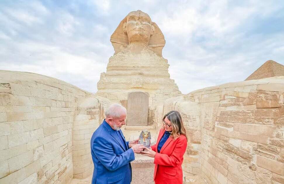 Em dia de folga no Egito, o presidente Luiz Inácio Lula da Silva e a primeira-dama Janja da Silva visitaram as pirâmides próximas da capital, Cairo, e a esfinge.
