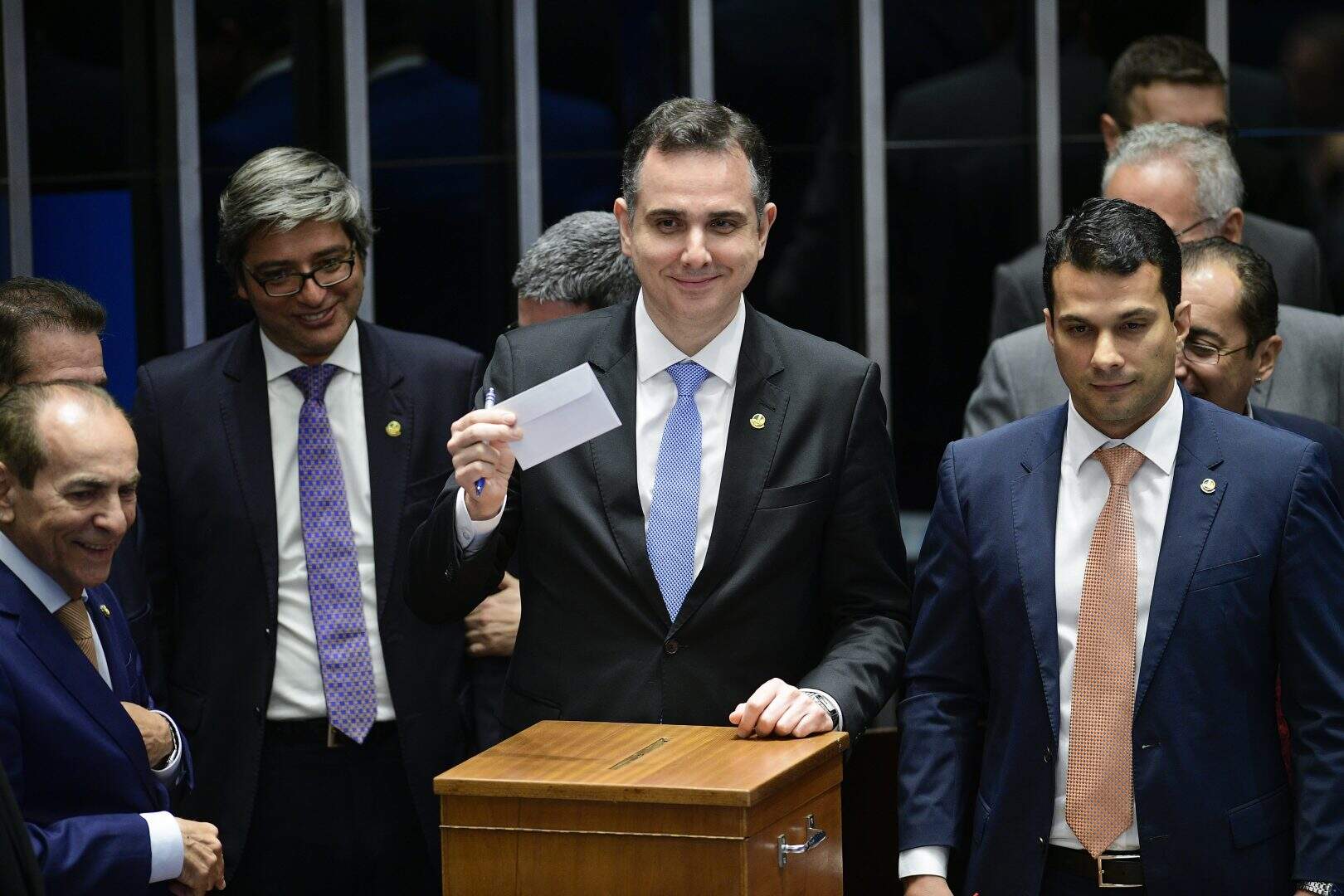 O senador Rodrigo Pacheco (PSD-MG) foi reeleito em primeiro turno nessa quarta-feira (1º), em votação secreta, como presidente do Senado e do Congresso Nacional pelos próximos dois anos. Pacheco recebeu 49 votos contra 32 do seu adversário Rogério Marinho (PL-RN).