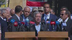 Em pronunciamento, Guterres pediu que Israel e Egito liberem imediatamente a entrada de caminhões com ajuda humanitária para Gaza. O secretário-geral entrou em Rafah pelo Egito, pois a passagem é permitida para autoridades. Dezenas de caminhões com mantimentos aguardam no país permissão para cruzar a fronteira.