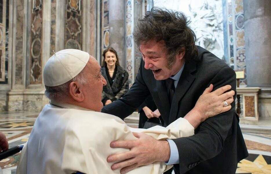 “Sim, claro que pedi desculpas a ele. E ele me disse ‘Não esquenta, são erros de juventude””, disse Milei sobre o encontro que teve com o papa em 12 de fevereiro do ano passado.