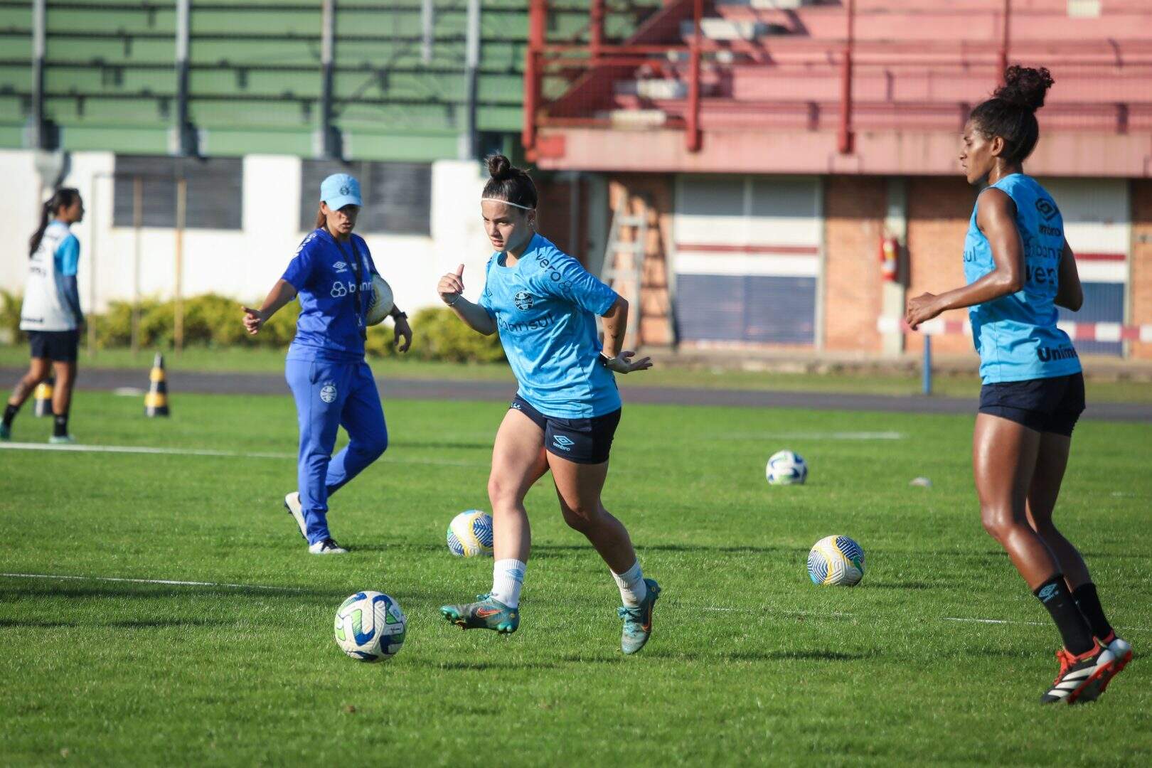 Após período de recesso e de testes físicos, a equipe feminina do Grêmio retornou aos treinamentos em campo e com bola. Na tarde desta segunda-feira (22), o grupo realizou atividades no Complexo Esportivo da Ulbra, em Canoas, sob orientação da técnica Thaissan Passos e sua equipe.