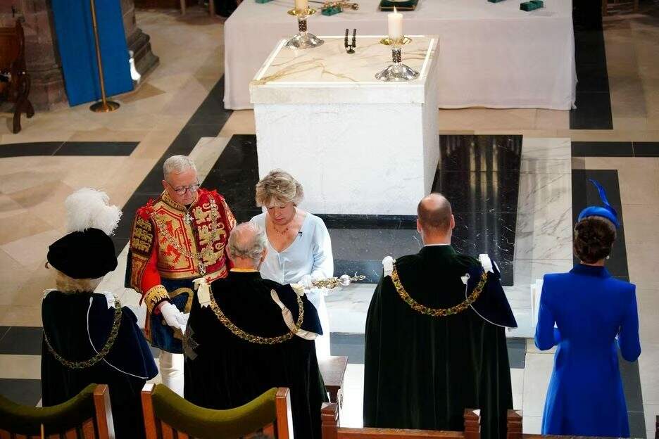 A cerimônia de hoje também trouxe antigas tradições, uma coroa e uma procissão pelas ruas da capital escocesa. Desta vez, no entanto, não foi colocada em sua cabeça, mas sim entregue a ele. A procissão reuniu cem pessoas, incluindo os herdeiros da Coroa, o príncipe e a princesa de Gales, William e Kate, mas desta vez, sem a presença do príncipe Harry.