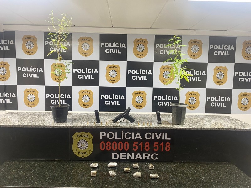Os agentes também constataram cheiro de maconha vindo da residência. Diante dos elementos, foi realizado o ingresso no local, onde foi apreendida uma pistola e porções da droga. No imóvel, também foi descoberto uma espécie de porão utilizado como esconderijo para os criminosos.