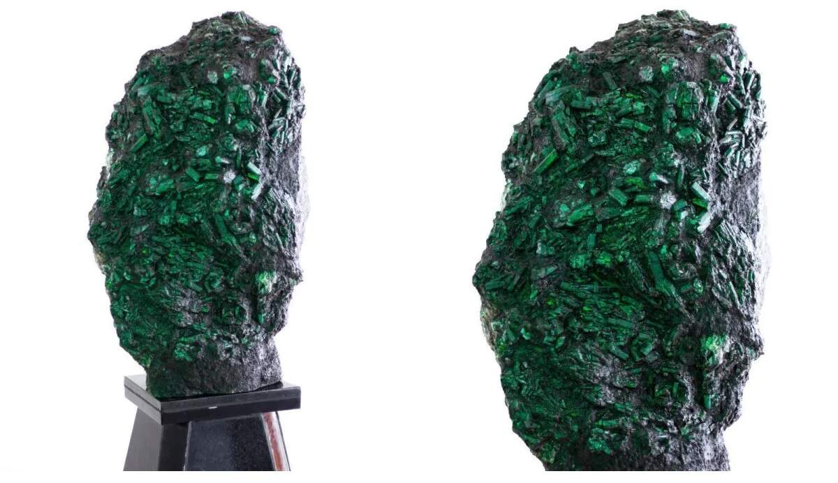 Uma canga de esmeralda de 241 quilos, avaliada em US$ 374 milhões, o equivalente a R$ 2 bilhões, é guardada em bunker em São Paulo enquanto aguarda para ser leiloada pelo valor mínimo de R$ 105 milhões.