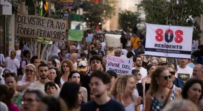 Os protestos foram convocados por cerca de 80 organizações e grupos sociais que exigem limites para o turismo maciço nas Baleares, cujas principais ilhas são Mallorca, Menorca e Ibiza.
