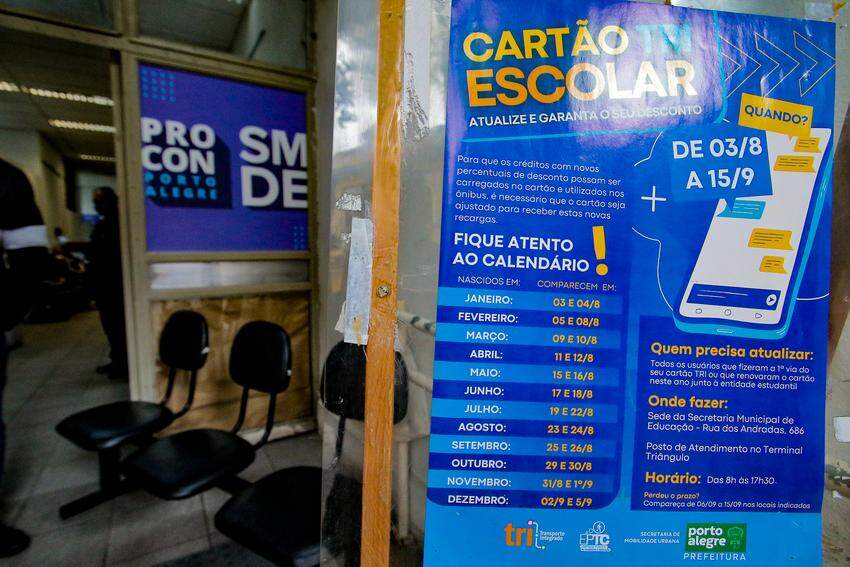 Nesta quarta-feira (17), e na quinta-feira (18), segue a força tarefa para a atualização do Cartão Tri Escolar na sede da Secretaria Municipal de Educação (rua dos Andradas, 686) e no posto de Atendimento do Terminal Triângulo (avenida Assis Brasil, s/nº) para os estudantes nascidos em junho, em Porto Alegre.