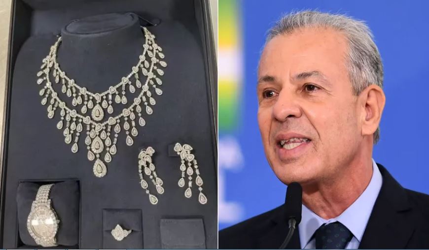 Como revelou o Estadão, o regime saudita enviou dois pacotes de presentes via o ex-chefe da pasta de Minas e Energia. O conjunto com colar, anel e pulseira de diamantes foi retido pela Receita Federal. O outro presente que entrou, com relógio e demais itens, foi entregue a Bolsonaro pelo sucessor de Albuquerque no ministério, Adolfo Sachsida.