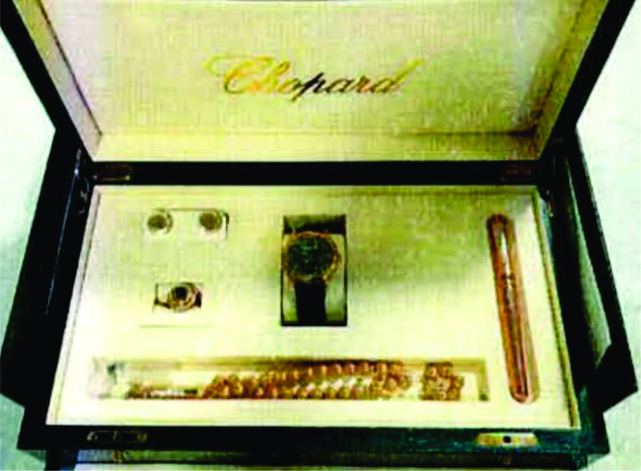 O ex-presidente Jair Bolsonaro recebeu pessoalmente o segundo pacote de joias da Arábia Saudita que chegou ao Brasil pelas mãos da comitiva do então ministro de Minas e Energia (MME), Bento Albuquerque. No estojo estavam relógio com pulseira em couro, par de abotoaduras, caneta rosa gol, anel e um masbaha (uma espécie de rosário islâmico) rose gold, todos da marca suíça Chopard.