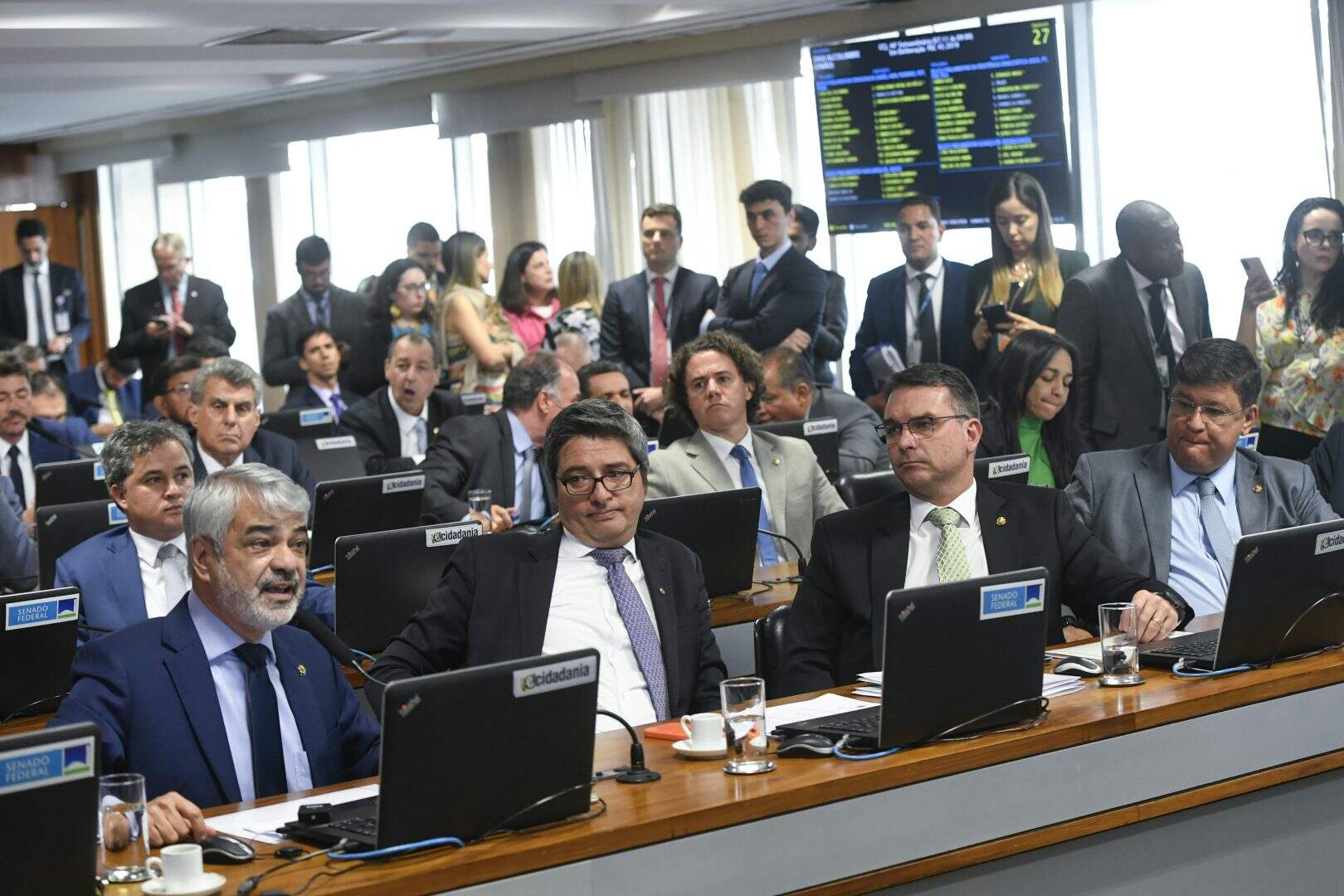 Lado a lado em assentos do colegiado, com direito a conversas ao pé do ouvido com parlamentares em mandato, estavam os ex-senadores Romero Jucá e Fernando Bezerra Coelho, do MDB, que hoje trabalham na iniciativa privada. A presença de ex-senadores em plenários é autorizada pelo regimento interno do Senado.