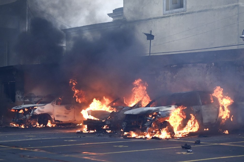 A TV local transmitiu ao vivo imagens do fogo e das colunas de fumaça que saíam dos veículos estacionados. Não está claro se deputados estão entre os feridos.