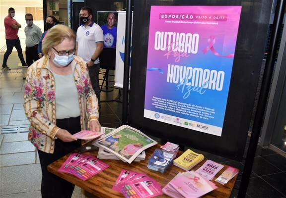 Além de fotografias de homens e mulheres que superaram a doença, a mostra tem painéis com mensagens de incentivo ao autocuidado e à realização de exames preventivos.