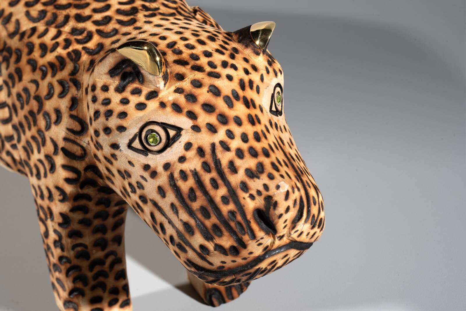 Entre as obras, há uma águia de quase um metro de altura, esculpida em madeira de erva-mate e espatulada a ferro quente, com olhos moldados em citrino, bico e crista de latão envernizado e pedras de zircônia no peito.