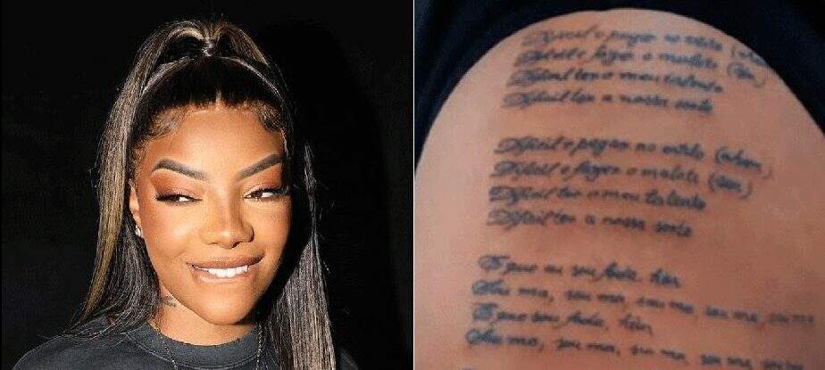 A cantora Ludmilla, de 28 anos, foi eternizada na pele de uma fã. Nos Stories do Instagram, a artista mostrou que a admiradora tatuou a letra de sua música “Sou Má” na lateral de sua coxa. “Uou”, escreveu Lud sobre a homenagem.