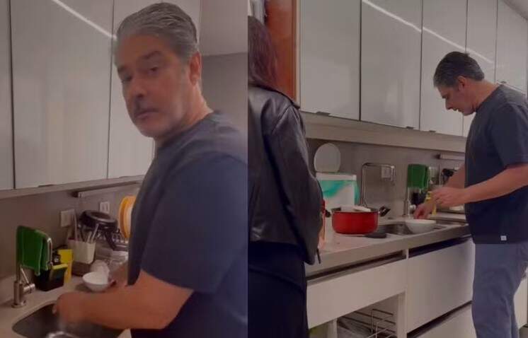 Em um vídeo nas redes sociais, ela mostrou o comunicador em sua cozinha durante o preparo da sobremesa para a família. Inclusive, as imagens revelaram detalhes da decoração do local, que tem armários claros, pia dupla e geladeira repleta de imãs.