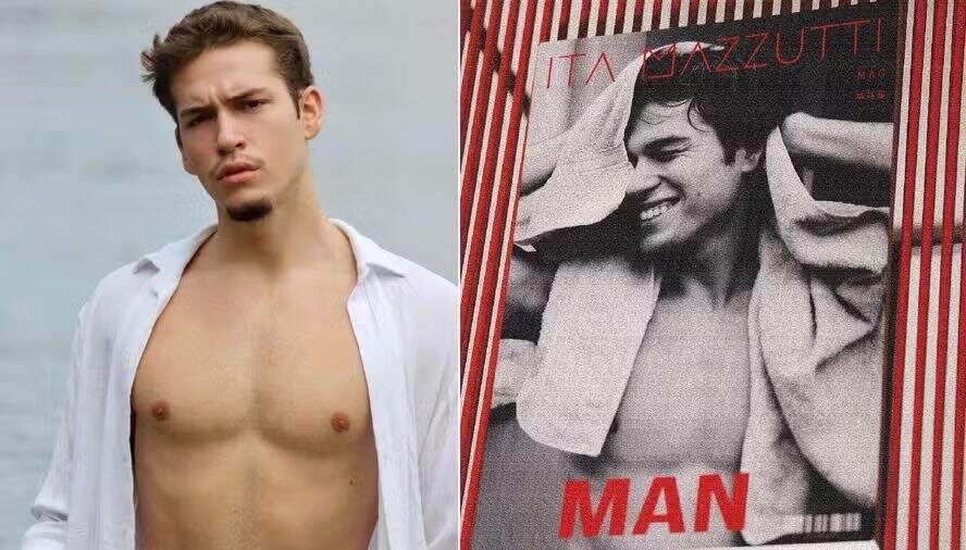 Entre as fotos do ensaio que fez com o fotógrafo Ita Mazzutti, a escolhida para a capa foi a que Pietro aparece sem camisa, se enxugando com uma toalha. “Demais”, comemorou ele no Instagram.