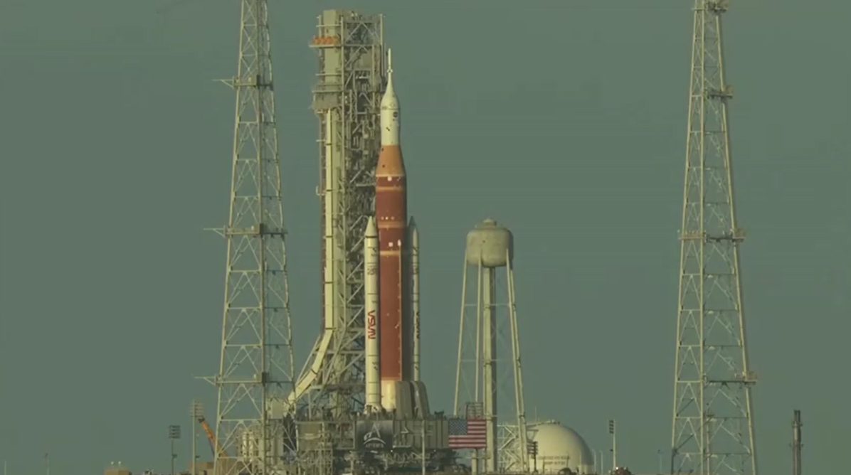 Viajando a apenas 1,6 km por hora em sua plataforma de lançamento móvel, o SLS, com 98 metros de altura, emergiu ao nascer do sol das gigantescas portas da garagem do Edifício de Montagem de Veículos da Nasa no Centro Espacial Kennedy para um deslocamento lento até sua plataforma de lançamento a cerca de 6,4 km de distância, enquanto centenas de funcionários e contratados da agência observavam atentamente.