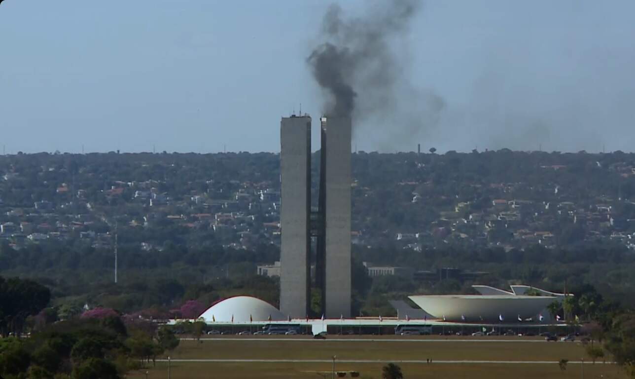 Uma grande quantidade de fumaça escura foi vista no Congresso Nacional, em Brasília, nesta sexta-feira (21). Em imagens gravadas é possível ver a fumaça na torre que fica localizada mais próxima da Câmara dos Deputados