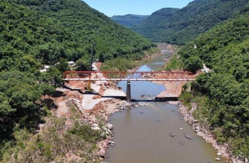 A ponte, localizada na divisa entre os municípios de Nova Roma do Sul e Nova Pádua, na Serra Gaúcha, terá 170,46m de comprimento e largura total de 10,95m, contando com duas pistas de rolamento.