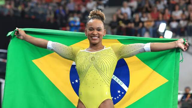“Ela ganhou o ouro no solo em Paris 2024, derrotando a ginasta mais condecorada do mundo, Simone Biles. Durante a cerimônia de premiação, Biles e sua companheira ginasta norte-americana Jordan Chiles se curvaram para a brasileira, um gesto que viralizou e se tornou um emblema das Olimpíadas deste ano”, escreveu a rede britânica, relembrando a icônica foto protagonizada por Rebeca, Biles e Chiles no pódio.