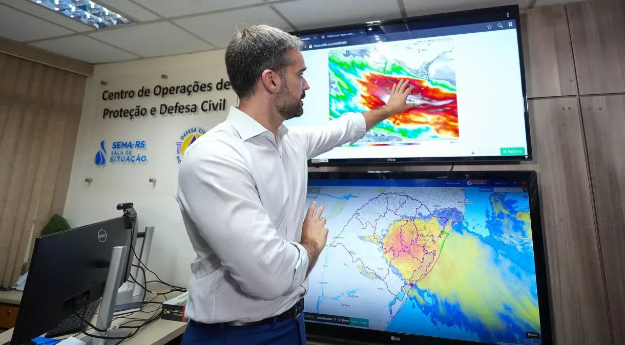 O governador do Rio Grande do Sul, Eduardo Leite (PSDB), afirmou nesta terça-feira (30) que o acumulado de chuva pode passar de 800 milímetros em algumas regiões do Estado.