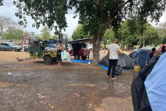 Manifestantes se instalaram em frente ao Exército após a derrota do presidente Jair Bolsonaro nas urnas. O grupo montou um acampamento no local, no setor Militar Urbano, para defender pautas antidemocráticas como intervenção militar no resultado das eleições. Barracas de comida, roupas e banheiros químicos foram instalados.