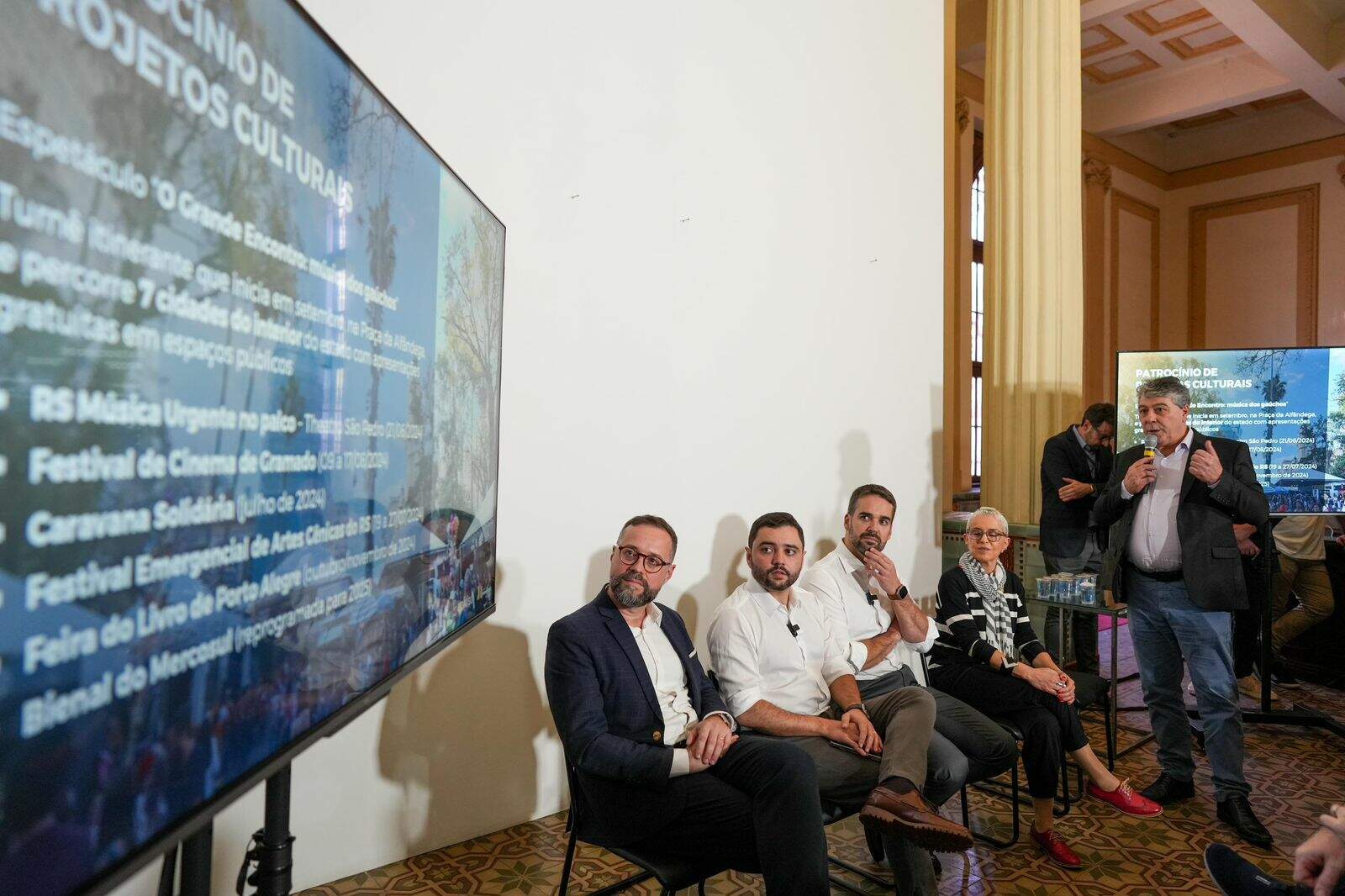 Nesta sexta-feira (7), o governo do Estado e o Banrisul anunciaram uma nova etapa do Programa Reconstruir RS, dessa vez com iniciativas voltadas para o setor cultural. Em um evento realizado no Museu de Arte do Rio Grande do Sul (Margs), com a presença do governador Eduardo Leite, do presidente do banco, Fernando Lemos, e da secretária da Cultura, Beatriz Araujo, o Banrisul formalizou o repasse de R$ 15 milhões para a recuperação de prédios culturais atingidos pelas enchentes, a abertura de um edital complementar de patrocínio para projetos do setor, que vai disponibilizar R$ 5 milhões em recursos, e outros R$ 5 milhões em patrocínios para eventos.