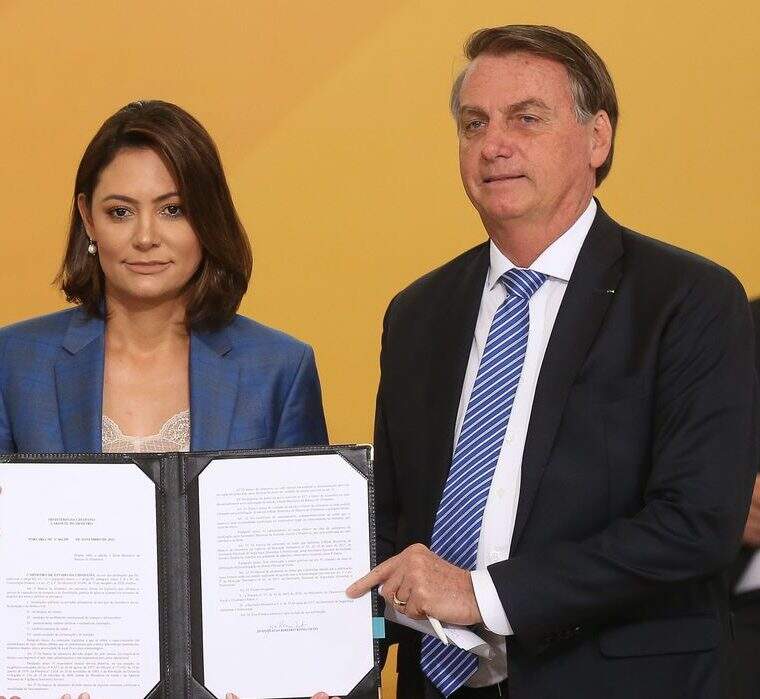 A solenidade foi realizada no Palácio do Planalto, em Brasília, com a presença do presidente Jair Bolsonaro, da primeira-dama Michelle, de ministros e representantes do setor de alimentos.