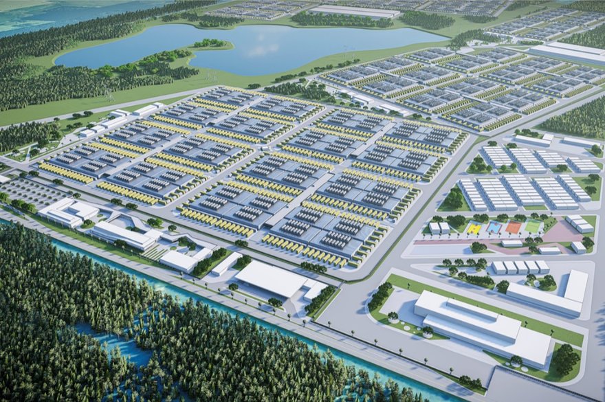 A fase inicial usará somente 70 hectares, o que equivale a 10% da área total. O projeto utiliza o design FutureProof, permitindo a instalação de racks que suportam cargas de trabalho intensivas em treinamento de inteligência artificial, com capacidades crescentes e superiores a 150 kilowatts (kW), em contraste com os 20 kW (ou menos) voltados para outros usos.