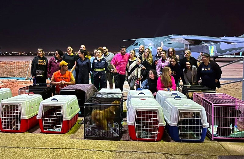Uma cooperação técnica entre o governo gaúcho e a Força Aérea Brasileira (FAB) já possibilitou o transporte para outros estados de aproximadamente 400 animais desabrigados por causa das enchentes. A ação conjunta tem permitido que cães e gatos possam ser recebidos por adotantes de qualquer parte do país. Os animais, devidamente identificados com chip e medalha, são entregues aos novos tutores no momento do desembarque nas bases aéreas de destino.