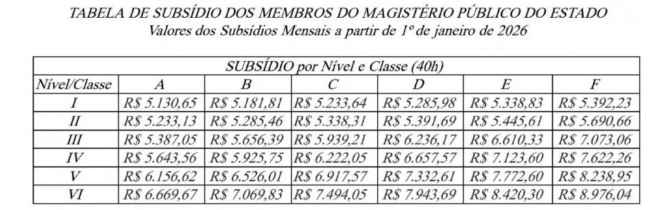 A medida tem efeito retroativo a 1º de janeiro de 2026 e busca atualizar a remuneração dos profissionais da educação no Estado conforme percentual definido pelo governo federal.