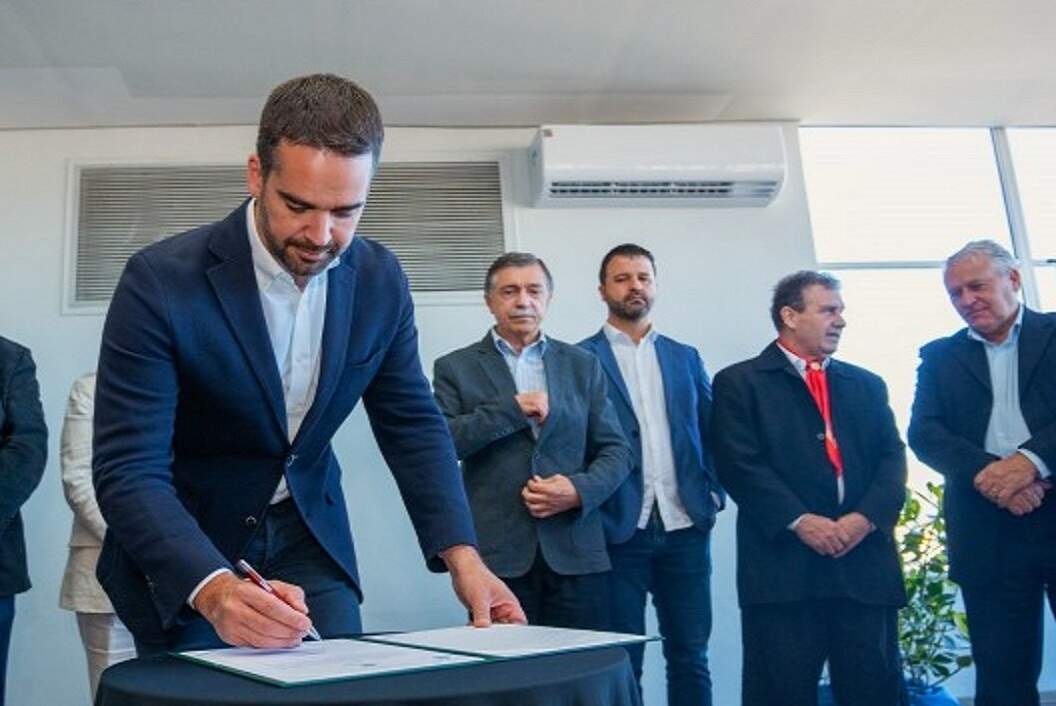 Antiga reivindicação da cidade, a outorga do Aeroporto Hugo Regional Hugo Cantergiani para a prefeitura de Caxias do Sul foi assinada à tarde por Eduardo Leite. O governador também rubricou a ordem de início para as obras de pavimentação de vias no bairro Desvio Rizzo e anunciou recursos para reforma da escola Alexandre Zattera.