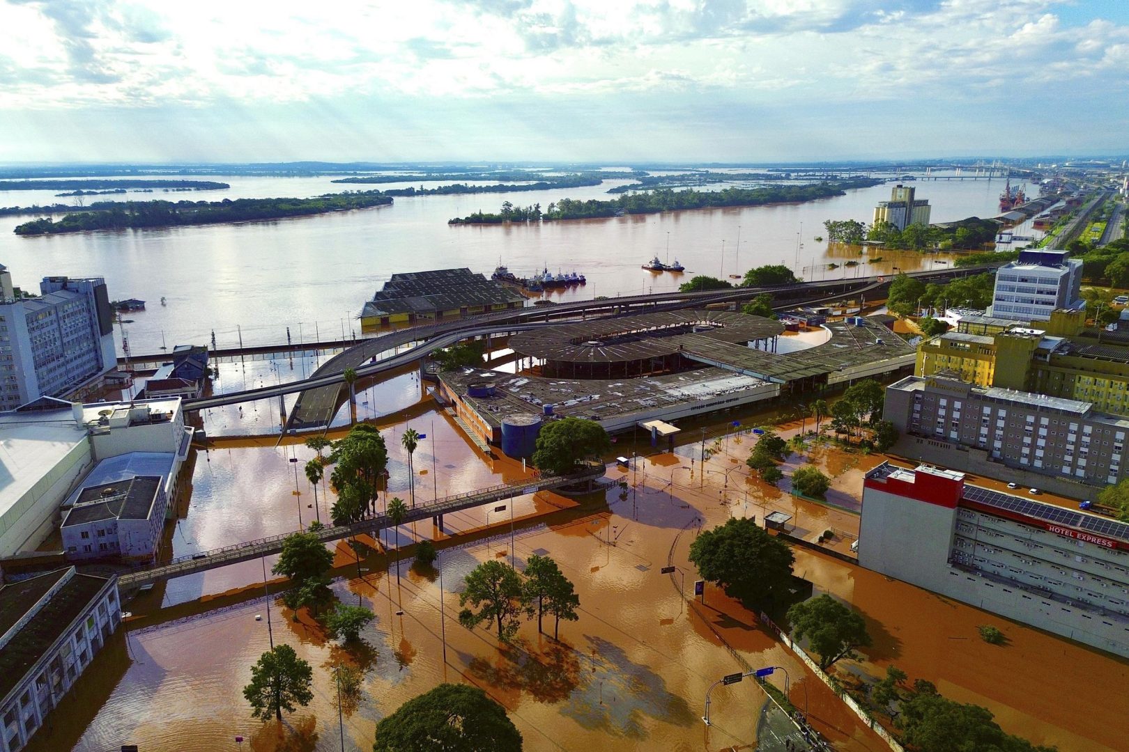 Conforme o estudo, Porto Alegre (RS), que acaba de sofrer grandes inundações, teria as margens do Rio Jacuí, toda a beira do Lago Guaíba e a região da Usina do Gasômetro atingidas pela subida das águas, com a temperatura global escalando 3°C. Com a alta de 1,5°C, parte dessas áreas ficaria inacessível.