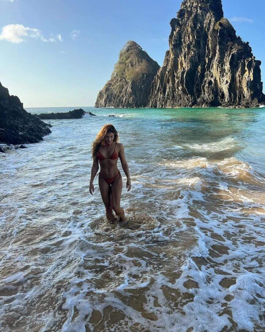 Grazi Massafera publicou fotos nesta segunda-feira (09) no Instagram em que aparece de biquíni durante a viagem em Fernando de Noronha. Nas imagens, a atriz de 40 anos de idade também pratica ioga no cenário paradisíaco.