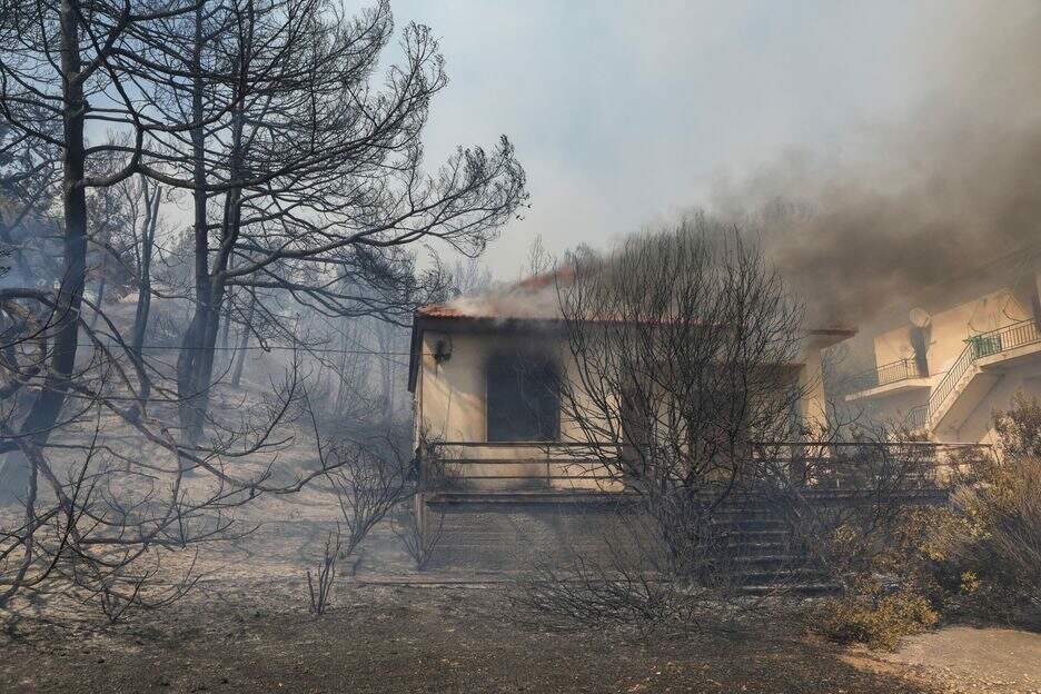 Pelo menos quatro casas foram destruídas, segundo a ERT. Desde sábado, a Grécia sofre uma onda de calor que, segundo as previsões, durará 10 dias com temperaturas de até 42°C em algumas áreas.