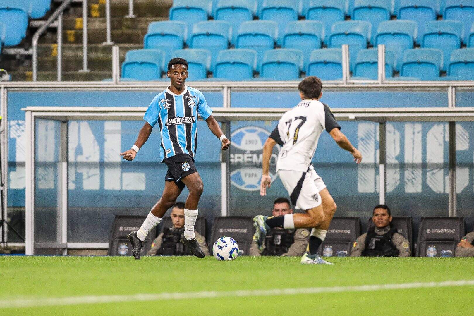 O Grêmio recebeu o Atlético-MG na noite dessa segunda-feira (13), na Arena, pelo jogo de ida da final do Brasileirão Sub-17, e venceu por 4 a 1, com gols de Lucca (2), Roger e João Borne. Mosquito descontou para o time mineiro. A partida teve a presença de cerca de sete mil torcedores.