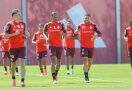 Os atletas iniciaram o aquecimento como de costume, acompanhados por Mário Pereira, preparador físico, e sua equipe, que montaram um circuito de força, arranque e velocidade.