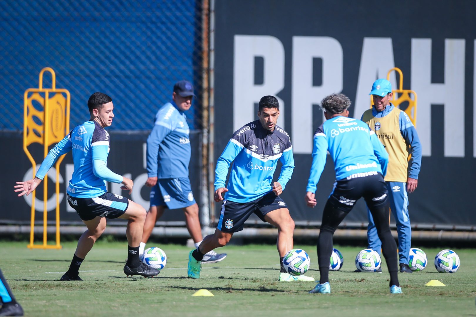 O trabalho foi realizado com os portões fechados e o técnico Renato Portaluppi aproveitou a privacidade para aperfeiçoar algumas questões táticas e jogadas ensaiadas com a equipe que vai a campo.