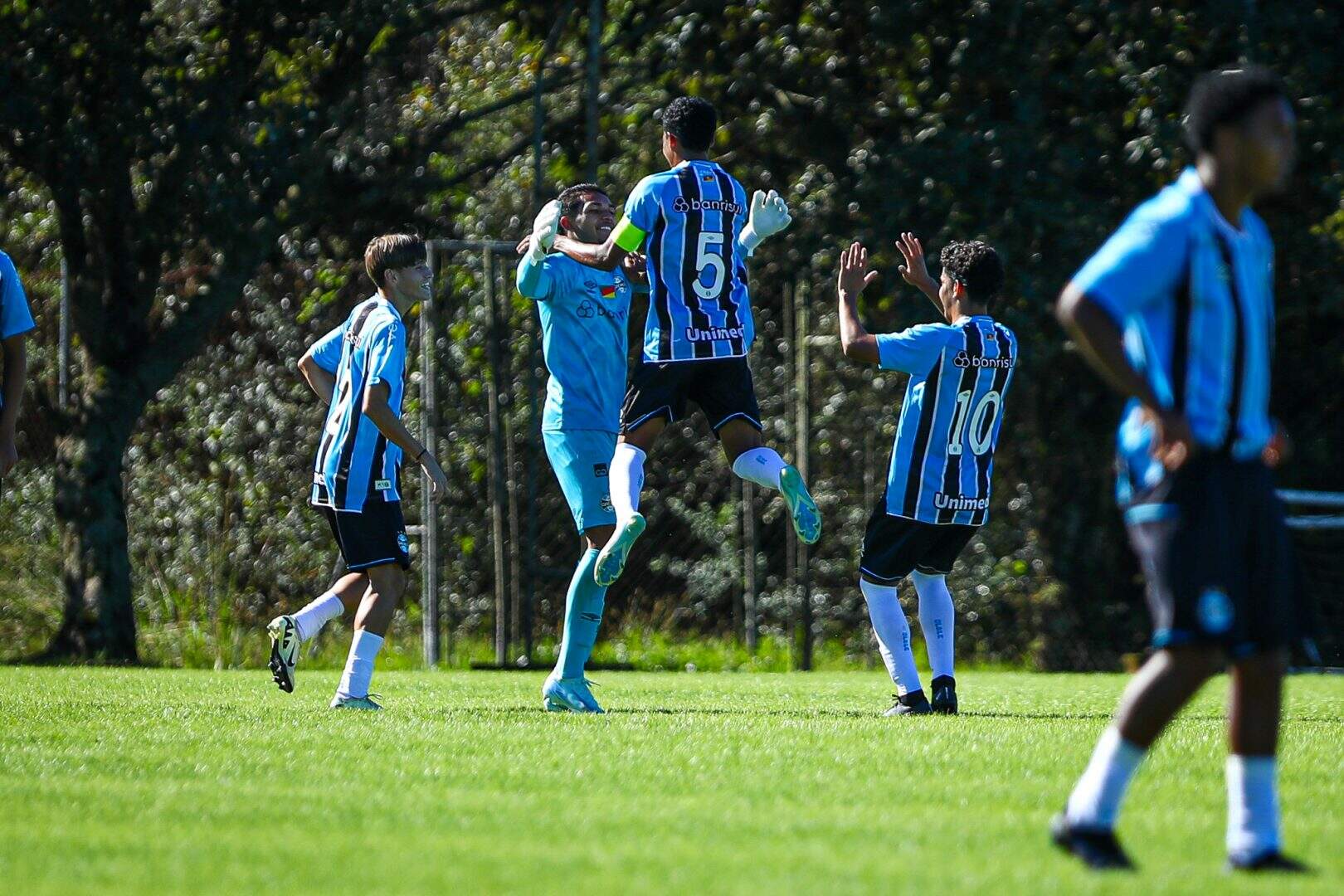 Aos 19 minutos de jogo, João Borne driblou na área e foi derrubado. O árbitro apontou a cal e deu o pênalti para o Grêmio. Ele mesmo cobrou e o goleiro Chico fez a defesa. Com o primeiro tempo tendo dominância da equipe Sub-17, o Grêmio acumulou chances durante os 45 minutos iniciais, mas não conseguiu abrir o placar.