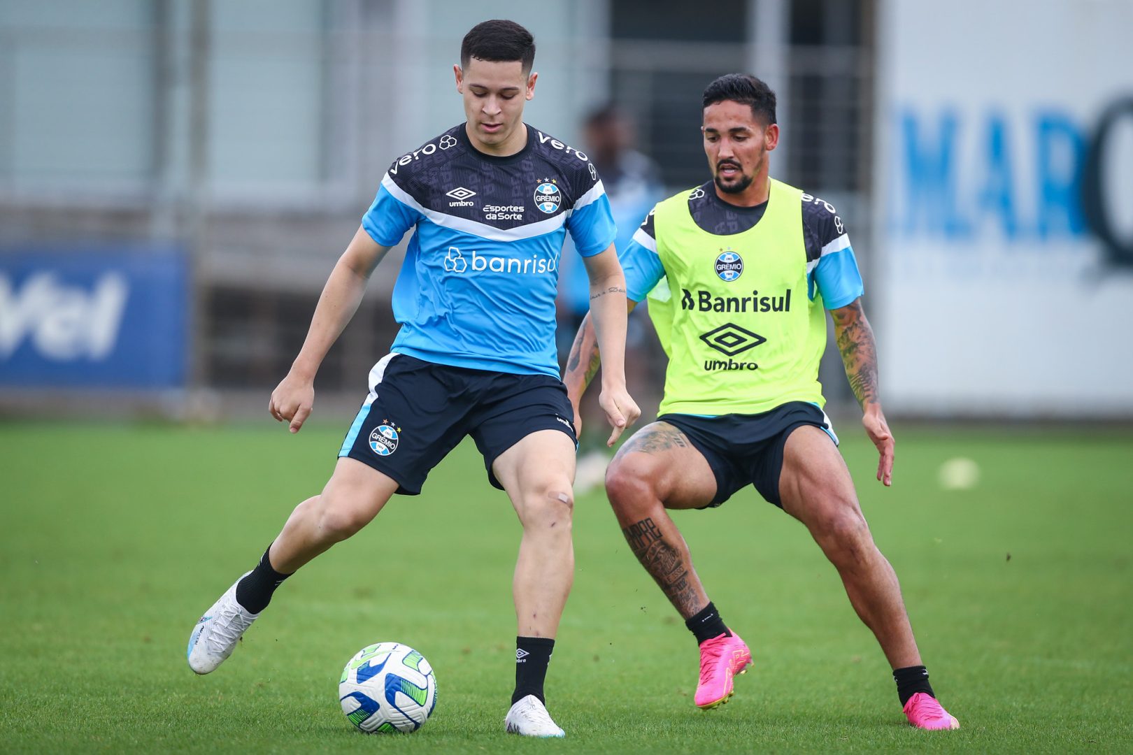 O plantel gremista voltou a treinar na manhã dessa terça-feira (14), no CT Luiz Carvalho, em Porto Alegre. O trabalho, aberto à imprensa, antecipou a liberação de quatro dias na parada para data-FIFA que começa nesta sexta (17). Até por isso, a movimentação foi mais leve e bem descontraída.