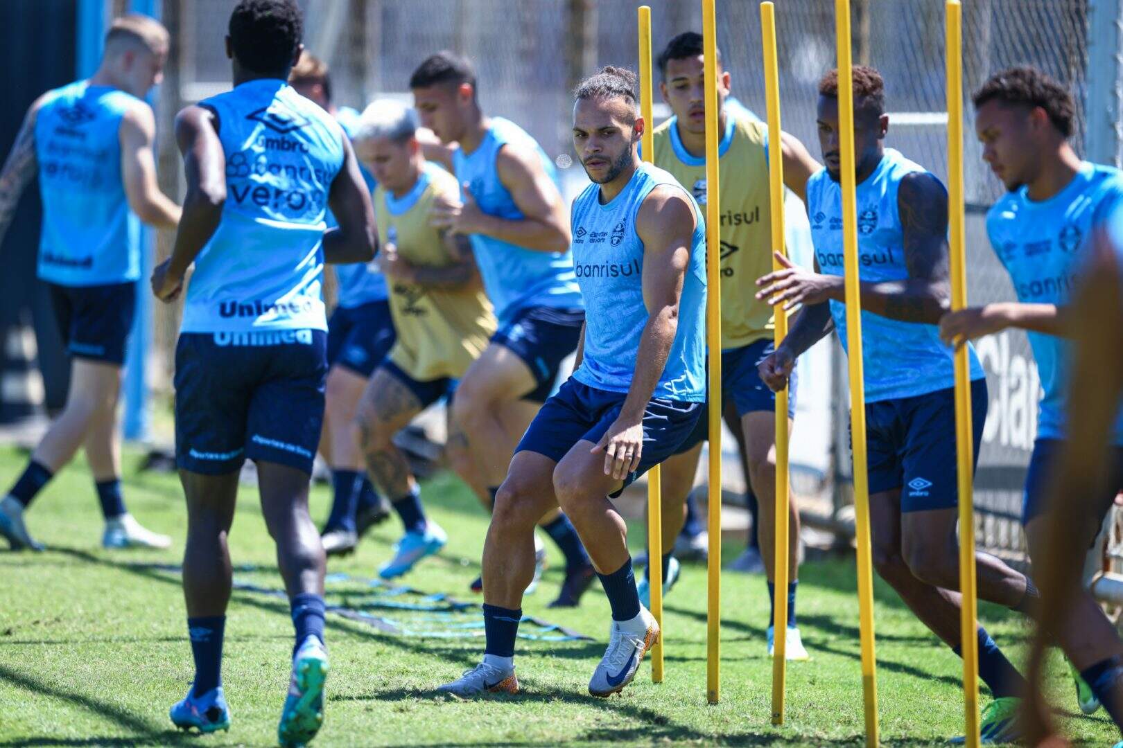 Já sob o comando de Renato Portaluppi, os jogadores trabalharam cruzamento e finalização, com foco na criação e, para os defensores, posicionamento e saída de jogo.