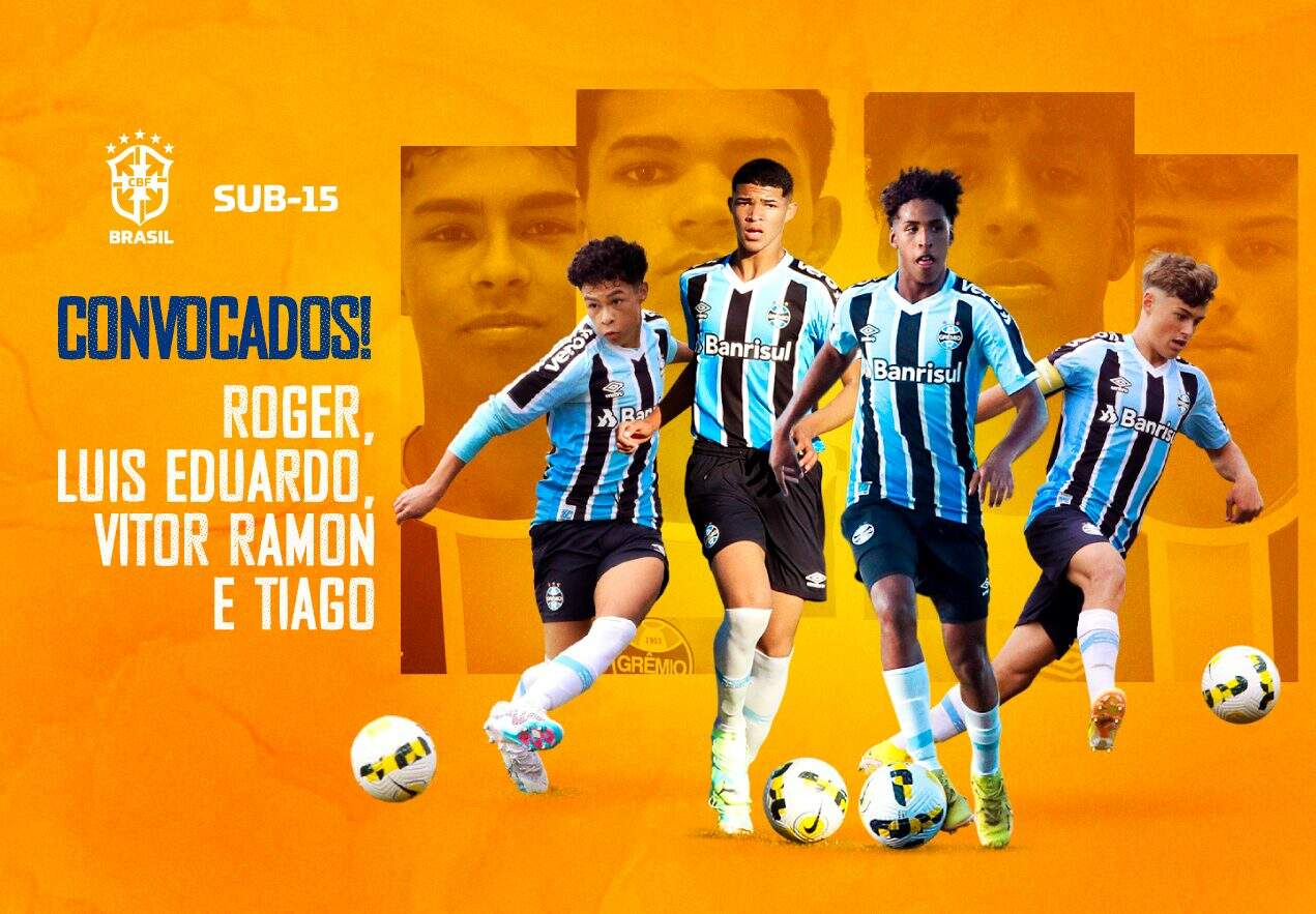 O Grêmio teve quatro atletas convocados para defender a Seleção Brasileira Sub-15. Nesta segunda-feira (31), a CBF (Confederação Brasileira de Futebol) divulgou a lista com 23 atletas chamados pelo técnico Dudu Patetuci. Entre eles estão os gremistas Vitor Ramon, Luis Eduardo, Tiago e Roger.