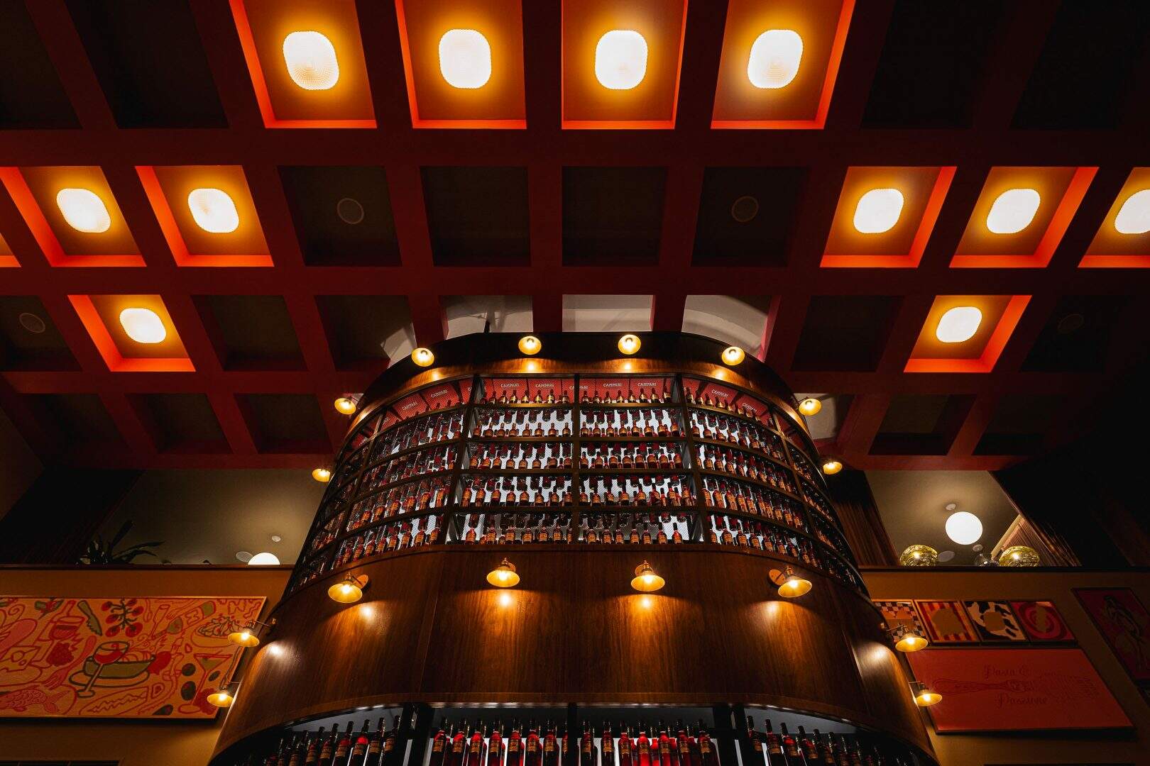 O projeto arquitetônico é assinado por Lorenzo Muratorio Cavichioni e respira arte em cada detalhe como na imponente estrutura do bar central de dois andares composta por 1.500 garrafas iluminadas de Campari, que é o elemento estrutural e simbólico da casa. A decoração traz peças únicas, garimpadas em antiquários do Brasil, e quadros desenvolvidos exclusivamente para o Cinema Paradiso, em uma fusão de cinema clássico, arte contemporânea e cultura pop.