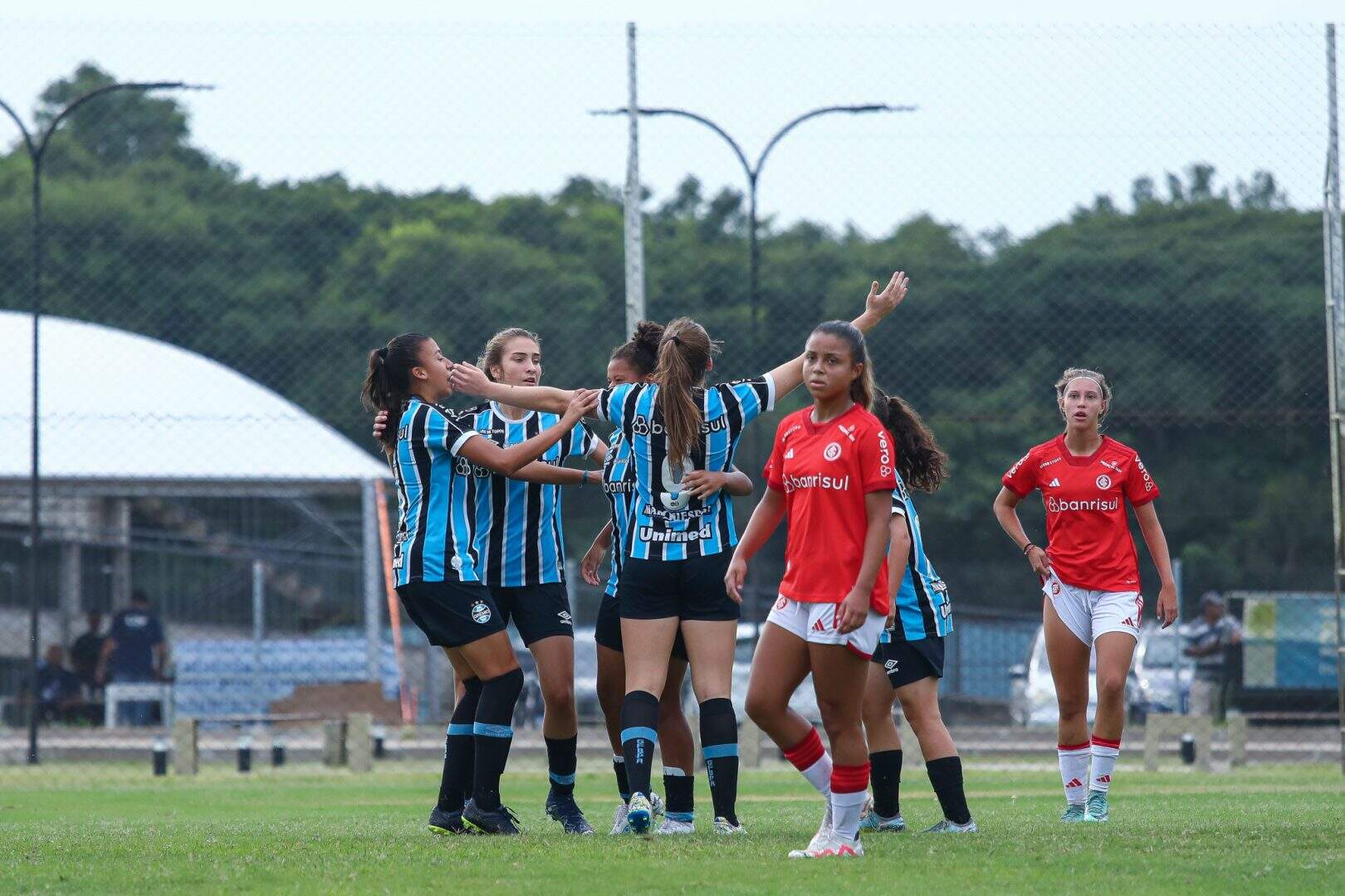 A manhã desta quinta-feira (04) foi de clássico Gre-Nal na Liga de Desenvolvimento CBF Transforma. Em grande jogo, as Gurias Gremistas da categoria Sub-16 venceram o duelo válido pela 2ª rodada da competição por 2 a 0, com gols assinalados por Maria, na etapa inicial e Helô, no segundo tempo. O resultado garante a equipe nas semifinais da competição.